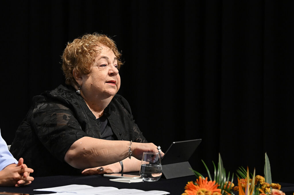 Türkiye Felsefe Kurumu başkanı, akademisyen, filozof Prof. Dr. İoanna Kuçuradi, günün açılış konuşmasında eğitimcilere seslendi. “Felsefi düşünce, kişilerin uygun bir eğitimle kazanabileceği bir bakıştır,” diyerek bütünsel planlanmış bir felsefe eğitimine ihtiyaç duyulduğunun altını çizdi. “Başkalarına ve olaylara bakarken, kişinin sınırları ve kendi sınırlarınıgörmesini, bağlantılı düşünebilmesini ve bağlamlar içinde, ait olduğu bütünde yerini görebilmeyi amaçlar. En önemli sıkıntılarımızdan biri, bağlantılı düşünememektir. Ezbercilik de buna dayanır,” sözleriyle felsefi düşüncenin önemine değindi.