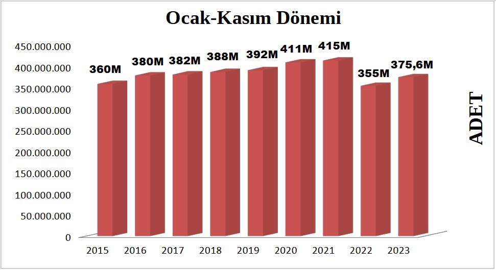 2022 yılında 380 milyon 296 bin 402 olarak gerçekleşen kitap üretim sayısı 2023’te 400 milyon 340 bin 577 adete ulaşmış. Millî Eğitim Bakanlığının ilköğretim ve ortaöğretim öğrencilerine ücretsiz olarak dağıttığı 249 milyon 493 bin 647 adet kitap ile birlikte toplamda 649 milyon 834 bin 224 adet kitap üretimi yapılmış.