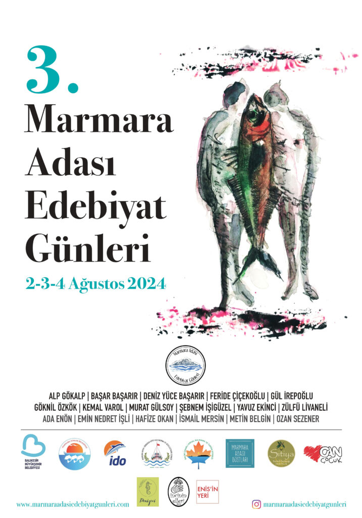 Marmara Adası Edebiyat Günleri’nin afişi Marmara Adalı ressam, heykeltıraş İsmet Değirmenci’nin ve grafik tasarımcısı Ozan Uysal’ın eseridir.
