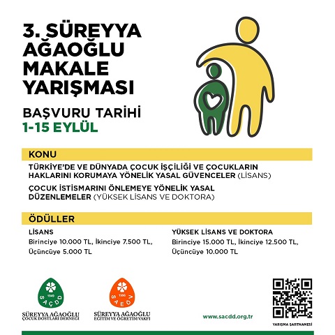 Süreyya Ağaoğlu Çocuk Dostları Derneği 3. Süreyya Ağaoğlu Makale Yarışması düzenliyor. Yarışmanın son başvuru tarihi 15 Eylül 2024.