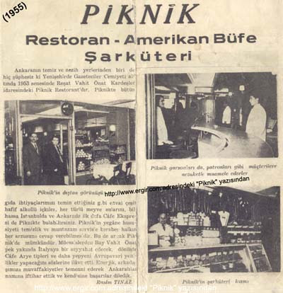 Hayatımda ilk sosisli sandviçi Piknik’te yedim. Piknik, şarküteri, pub, lokanta karışımı zamanına göre çok modern bir yerdi. Bir öğlen babam götürmüştü ve pub bölümünde, ayakta sandviç yemiştim. Sosislinin içindeki daha sonra “Amerikan Salatası” adını alacak olan o zamanlar Rus Salatası denilen mayonez salatasıyla da ilk kez orada karşılaşmıştım. Döner kebap da tavuk da yaygın yiyecekler değildi. Tavuk bulunup alınması da pişirilmesi de zor olduğu için ancak yılda bir – iki kez yapılırdı evde. Her yerde dönerciler de görmezdiniz. Büfeler de dönerli sandviç de daha sonra yaygınlaştı. Daha çok tandır yenirdi ve tandırcılar Ulus’taydı. Dedemle birlikte Ulus Çarşısı’nın arkasında salaş ama çok meşhur olduğundan kapısında sıraya girilen bir tandırcıya gittiğimizi anımsıyorum.