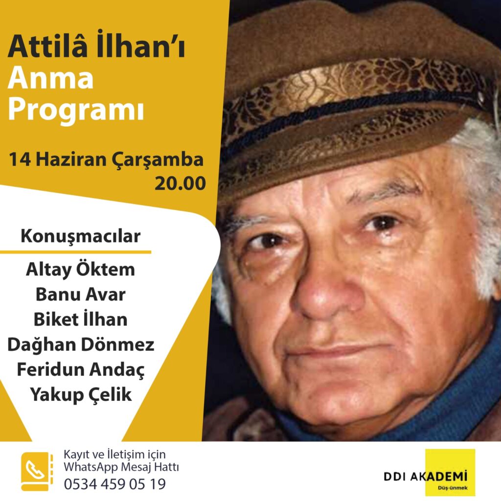 DDI Akademinin düzenlediği Attilâ İlhan’ı Anma Gecesi 14 Haziran Çarşamba 20.00’de çevrimiçi olarak yapılacak.