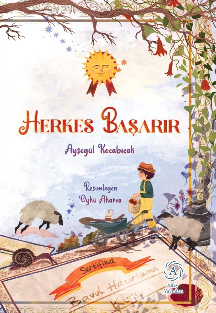 Bir diğer kitabımızsa nahif bir anne yüreğiyle çocuklara yazan Ayşegül Kocabıçak’tan. Öykü Akarca’nın resimlerinin eşlik ettiği kitap Altay Yayınları tarafından bizimle buluşturuldu. Ayşegül Kocabıçak’ın yetişkinlere yönelik yazdığı öyküler ne denli sert ve vurucuysa çocuklar için yazdıkları da tam aksine yumuşak ve özgüven aşılayıcı. “Herkes Başarır”da günümüz modern çağının içinde, her ikisi de çalışan ebeveynlerin her türlü kursa göndererek kendi eksiklerini kapatma telaşına düştükleri duruma tutulan bir aynayı görüyoruz. Bu cendereye düşen çocuk da Başar. Adının Başar olmasının nedeni de buymuş zaten. Her şeyi başarsın! Başar’ı buna inandırmışlar. “Her bilginin bir kursu var ve öğreneceği her türlü konu için bir kurs olduğuna emin!” Peki başarı için hangi kursa kayıt yaptırmalı? Plazalardan uzakta geçirdiği yaz tatili Başar’a unutamayacağı deneyimler yaşatmış, onu başka bir insana dönüştürmüş. Köy hayatı onu kendi gücüyle, yetenekleriyle tanıştırmış ve güzel bir başarı hikâyesi yaşatmıştır. Başar, başarının ve başarmanın ne olduğunu öğrenmiştir.