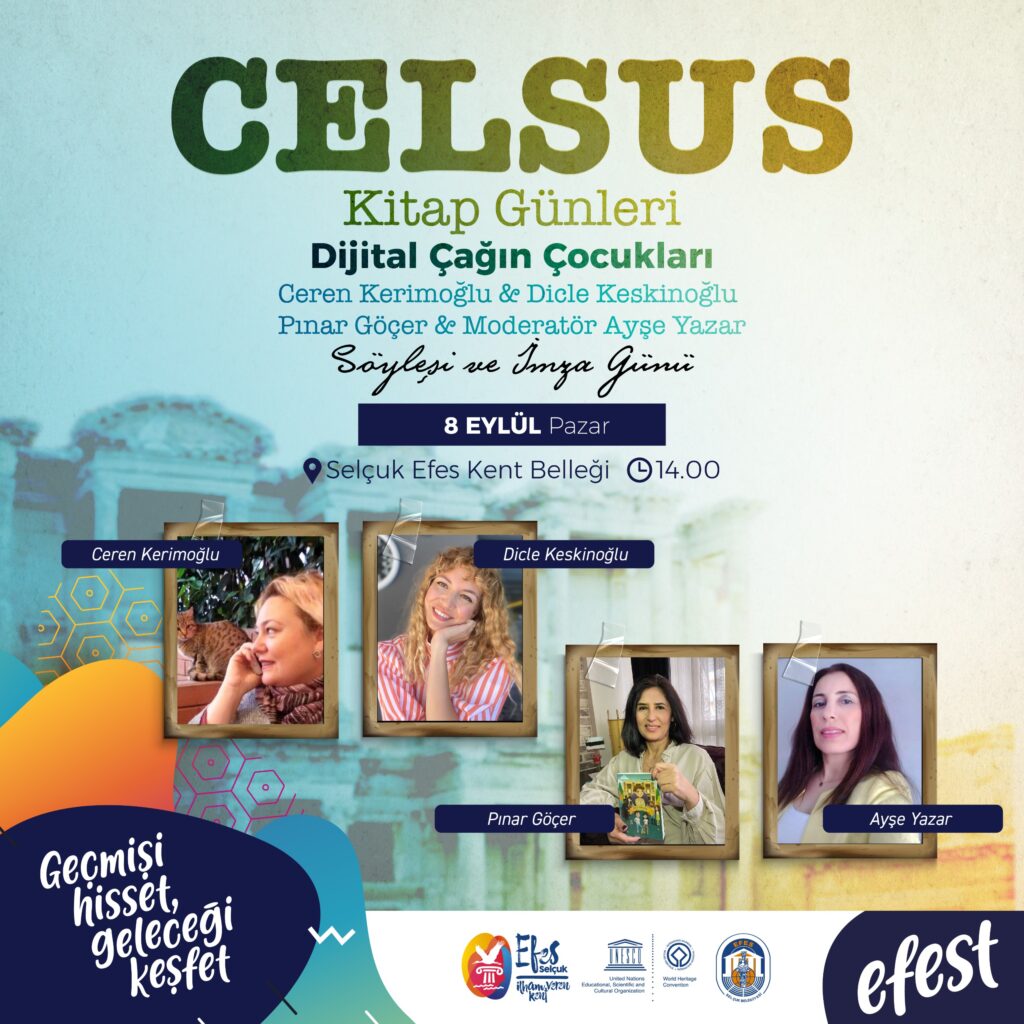 Selçuk Belediyesi, Ünlü kütüphaneci Celsus’un anısına yapılan Efes Antik Kenti’nin görkemli anıtlarından Celsus Kütüphane’sinin adını taşıyan Celsus Kitap Günleri’nde edebiyatımızın önemli yazarlarını ağırlayacak. Söyleşiler, Selçuk ilçesinin hafıza mekânlarından Selçuk Efes Kent Belleği’nde gerçekleşecek. Etkinlerde yayınevleri kitap stantları açarak kitaplarıyla okurlarını buluşturacak.