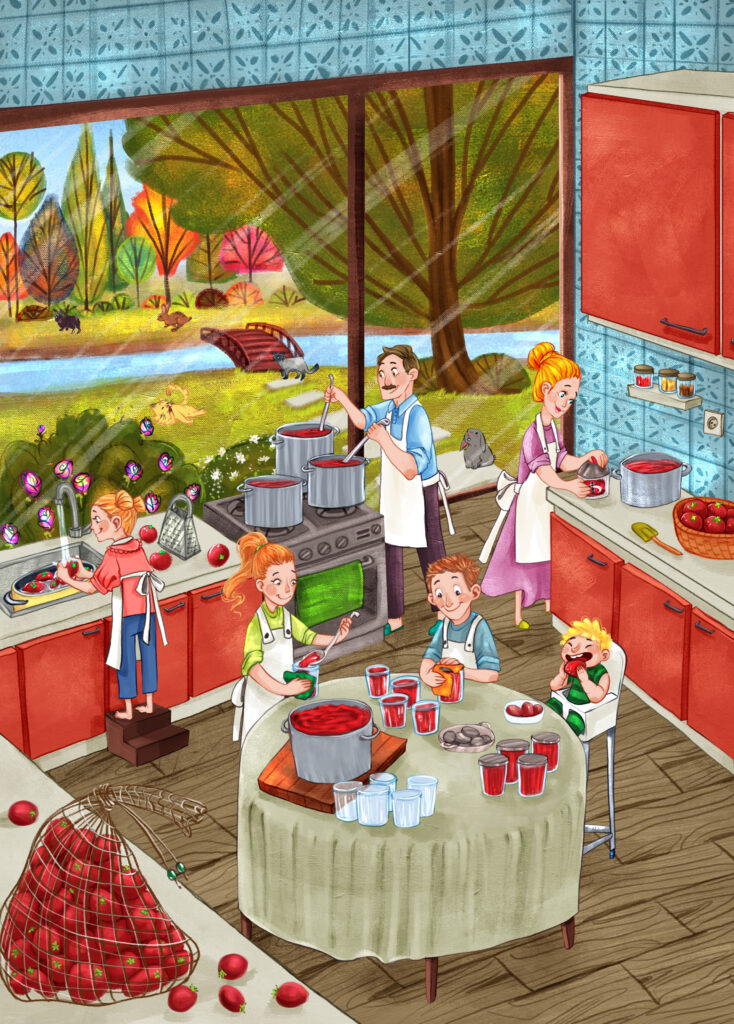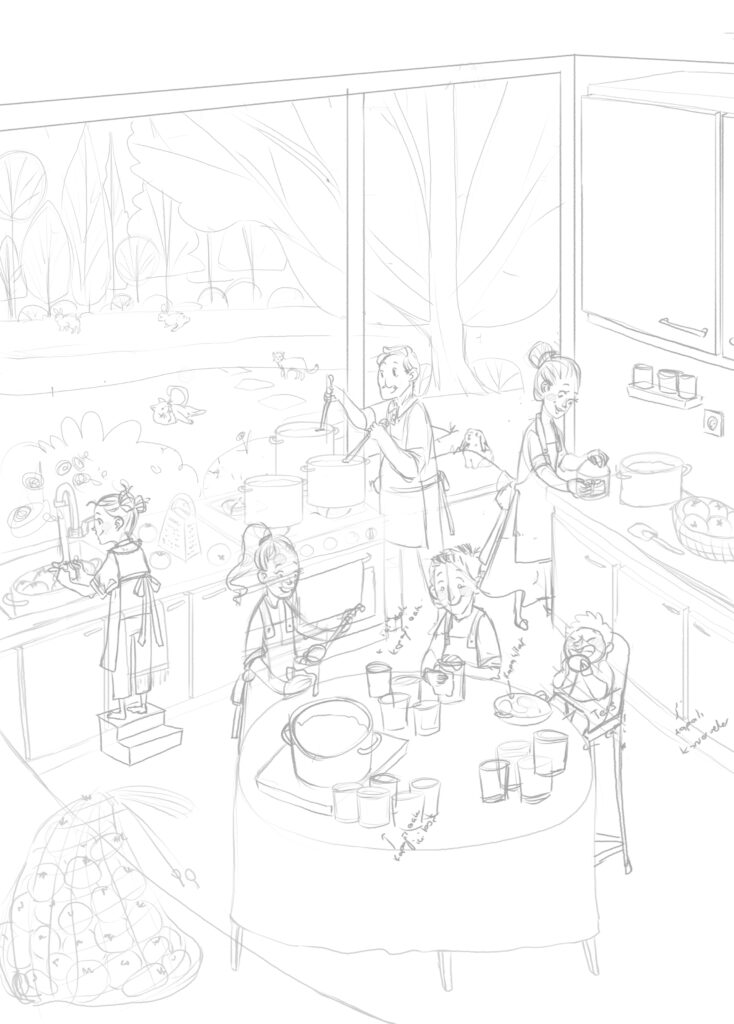 Eskizler onaylandıktan sonra boyamaya geçiyorum. Bütün çizimler boyanınca revize varsa onları hallediyorum ve en son çizimlerin psd(orijinal layerlı dosya) dosyasını editöre mail ile iletiyorum. Eskiz onaylandıktan sonra çizimi baştan değiştiremiyoruz. Bu ekstra bir çizim demek ve ekstra maliyet demek. Genelde yazarlar böyle taleplerde bulunabiliyor. “Ya ben eskizde anlamamışım” ya da “Benim aklıma sonradan şöyle bir şey geldi” gibi sözlerle çizimi sıfırdan baştan yaptırmak istiyorlar. Bu durumlarla karşılaşmamak için eskiz aşamasında birkaç kez uyarıyorum yazarları. Editörler bu konu hakkında bilgi sahibi oluyor ama yazarlar özellikle deneyimli değilse sürekli başımıza geliyor. Aşağıda sizler için eskizlerimin renklendirilmiş hallerini de ekliyorum.