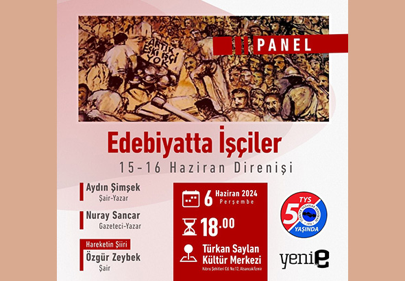 Türkiye Yazarlar Sendikası (TYS) ve Yeni E Dergisi’nin ortaklaşa düzenlediği “Edebiyatta İşçiler” etkinliği 6 Haziran Perşembe, Saat 18’de, İzmir Türkan Saylan Kültür Merkezi’nde gerçekleşecek.
