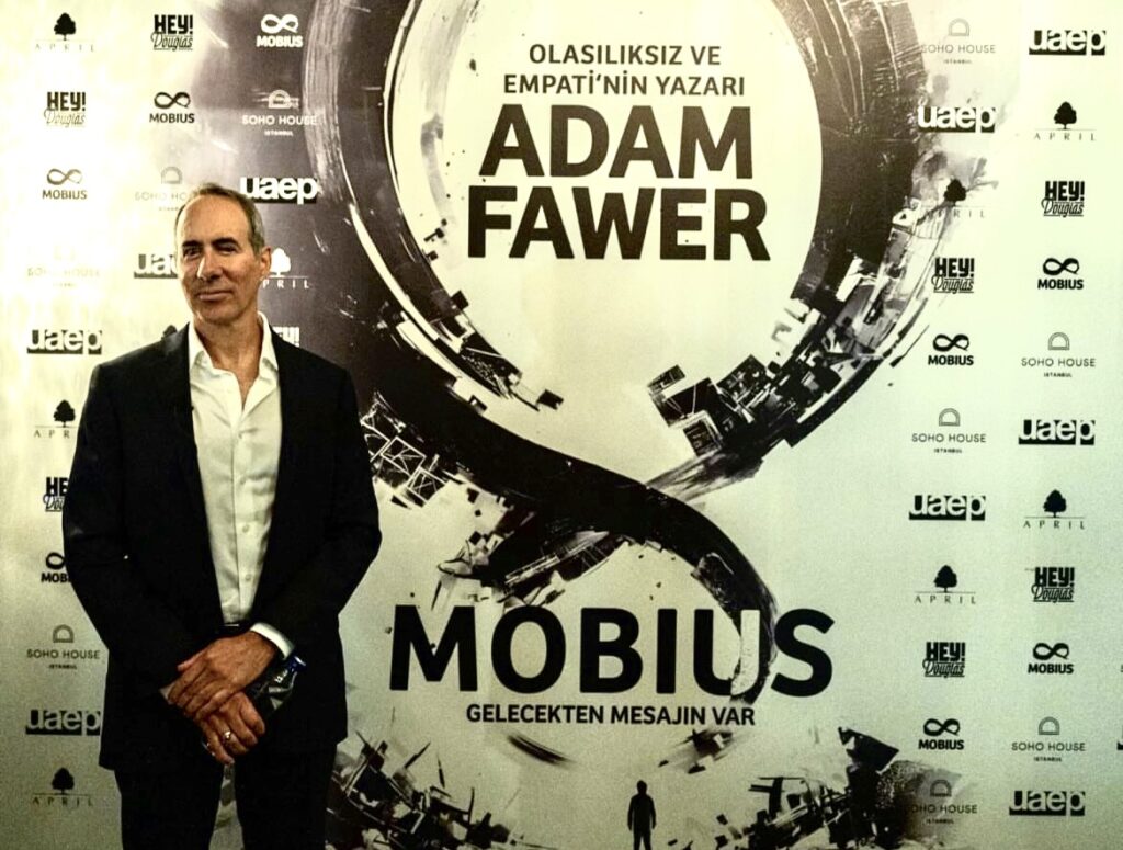 Olasılıksız ve Empati’nin fenomen yazarı Adam Fawer, yeni kitabı Mobius’la Türkiye’de benzeri görülmemiş bir edebiyat turuna imza attı. Beş ayrı şehirde üç hafta boyunca binlerce okuruyla buluşan, üniversite ve kitabevi buluşmalarına katılan, yeni ve klasikleşmiş romanları Olasılıksız, Empati ve OZ’u imzalayan Fawer, Mobius evrenini Ankara, İzmir, İstanbul, Bursa ve Eskişehir’de kitapseverlerle paylaştı.