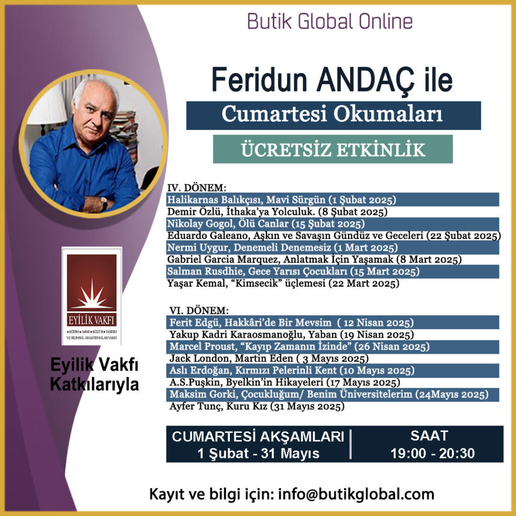 Butik Global, Feridun Andaç ile Yazarların İzinde Okuma Yolculuğu atölyesinin yeni dönemi başlıyor.