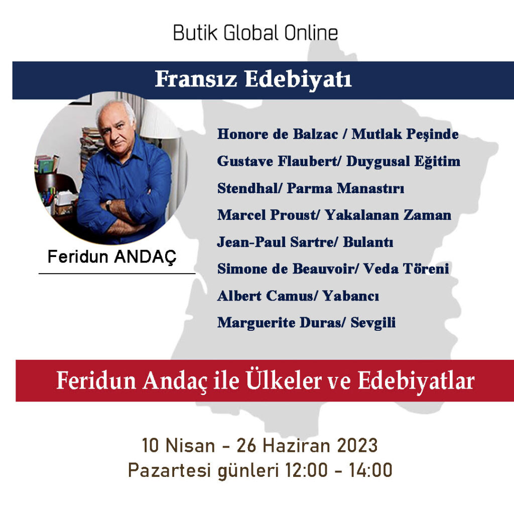 Feridun Andaç ile Fransız Edebiyatı semineri 10 Nisan-26 Haziran tarihleri arasında Butik Global Online tarafından düzenleniyor.