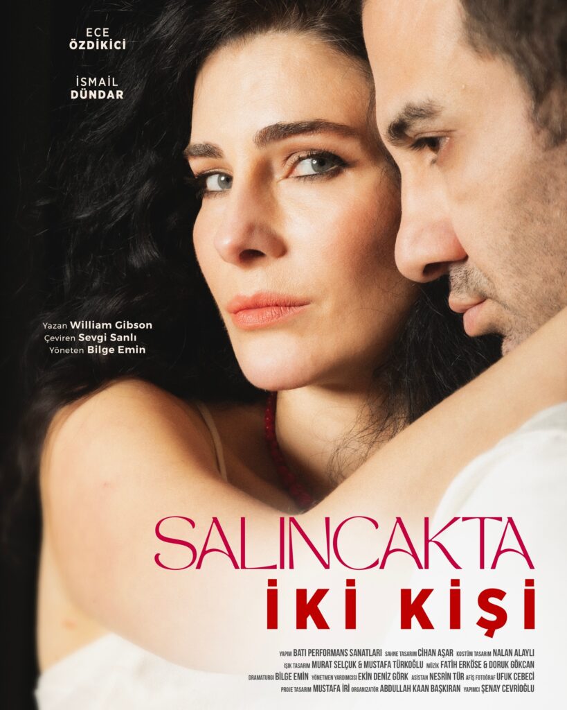 Amerikalı oyun ve senaryo yazarı William Gibson’ın 1958 yılında yazdığı, 1959’da Amerika’da “yılın en iyi oyunu” ödülünü alan, iki kez sinemaya uyarlanan, dünyada en çok sahnelenen tiyatro oyunlarından biri olan “Salıncakta İki Kişi” bu sezon, Batı Performans Sanatları bünyesinde, ünlü ve sıra dışı çevirmen yönetmen Bilge Emin’in tek perdelik yorumuyla tiyatroseverle buluştu.