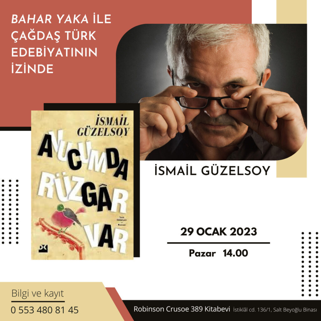 İsmail Güzelsoy ile yeni romanı Avucumda Rüzgar Var üzerine söyleşi 29 Ocak’ta düzenleniyor.
