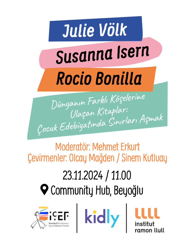 İstanbul Uluslararası Çocuk Edebiyatı Festivali (İÇEF) 20-23 Kasım tarihleri arasında çocuk edebiyatı alanının yıldız isimlerini konuk ediyor. Türkiye’de ve dünyada okurların beğenisini kazanan eserleri yaratan Susanna Isern, Rocio Bonilla ve Julie Völk İstanbul’a ilk kez bu festival kapsamında geliyor.