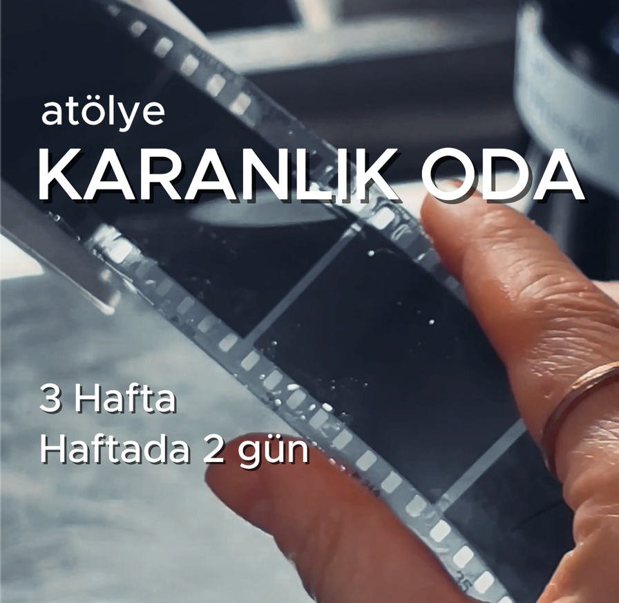 Karanlık Oda atölyesi başlıyor! Deklanşöre bastığımız anda filmin yüzeyinde oluşan ışığın izini takip edeceğimiz, banyo ettiğimiz fotoğraf karelerini kağıt üzerinde deneyimleyeceğimiz; kimyanın bol olduğu, hareketi yavaşlattığımız, zamanı saydığımız bir atölye Karanlık Oda.