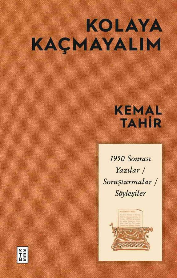Kemal Tahir’in 1950 sonrası yazıları, söyleşileri ve soruşturmaları Ketebe Yayınları etiketi altında bir araya getirilmiş. Adını Kemal Tahir’in Fethi Naci’ye yazdığı eleştiriden alan Kolaya Kaçmayalım, romancı Kemal Tahir’in 1956 yılından itibaren çeşitli gazete ve dergilerde yayımlanan yazılarını, farklı konulardaki soruşturmalara verdiği cevaplarını ve kendisiyle yapılan söyleşileri ilk defa bir araya getirmekte. Yazara ait bu metinler; yazılar, soruşturmalar ve söyleşiler olmak üzere üç bölümde sınıflandırılmış ve her bölüm kendi içinde kronolojik olarak sıralanmış. Sıralamada metinlerin yayın tarihleri esas alınmakla beraber ve yazı başlıkları, daha anlaşılır olmaları için yeniden düzenlenmiş.