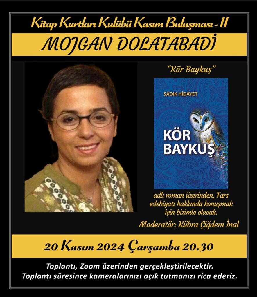 Kitap Kurtları Kulübü, edebiyat sohbetleri serisinin kasım ayı konuğu çevirmen Mojgan Dolatabadi olacak. Etkinlik Kübra Çiğdem İnal moderatörlüğünde 20 Kasım günü saat 20.30’da zoom üzerinden. gerçekleşecek.