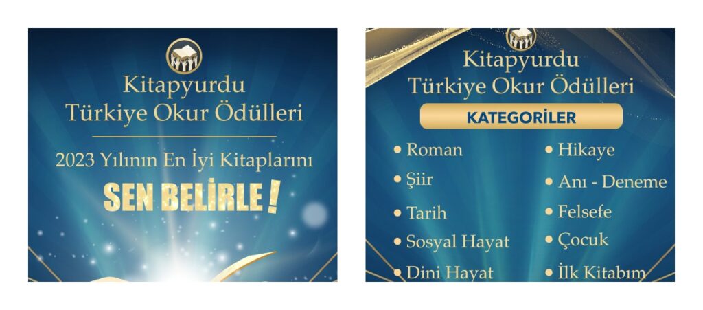 Türkiye’de kitap ve okur kültürüne katkı yapması amaçlanan Kitapyurdu Türkiye Okur Ödülleri 2023 yılının en iyi kitaplarını belirliyor. Yarışma, yazarlar ve kitapları okurların takdiri ile buluşturuyor.