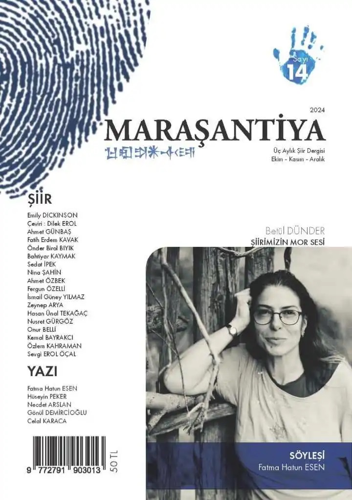 Maraşantiya’nın bu sayıdaki söyleşi konuğu Betül Dünder. Betül Dünder ile “Şiirimizin Mor Sesi” başlıklı bir söyleşi yer alıyor.