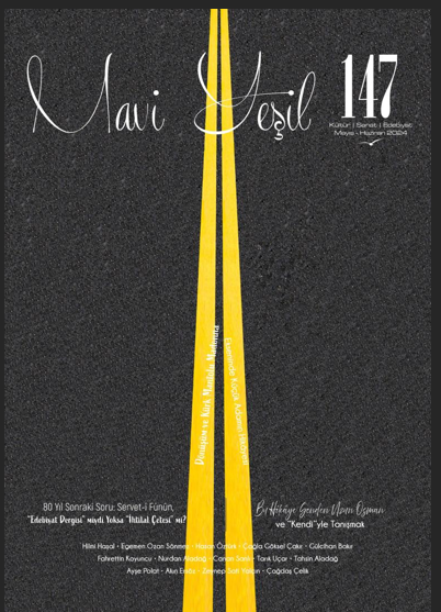 Mavi Yeşil dergisi, 147. sayısıyla yirmi beşinci yılının ilk yarısını tamamladı. Mayıs-Haziran 2024 tarihli 147. sayısıyla okurlarının karşısına çıkan Mavi Yeşil, edebiyatsever dostları bu kez de zengin bir içerikle karşılıyor. Hilmi Haşal, Çağla Göksel Çakır ve Tahsin Aladağ, bu sayının şairleri. Bu sayımızda dört öykücümüz var: Ayşe Polat, Akın Ersöz, Zeynep Sati Yalçın ve Çağdaş Çelik. Canan Sanlı bir şiir kitabını değerlendirirken Tarık Uçar da yakınlarda yayımlanan bir romanı değerlendirdi bu sayıda. Nurdan Aladağ, şair Fahrettin Koyuncu ile şiir/kitabı için görüştü. Gülcihan Bakır, yayımlandığı ilk günlerde hayli ses getirmiş “Bu Hikâye Senden Uzun Osman” (Aylin Balboa) adlı öykü kitabını psikolojinin bakışıyla yeniden değerlendirdi. Adı bu dergide ilk kez geçen Egemen Ozan Sönmez, edebiyat dünyamıza farklı bir yaklaşımla bakan yazsıyla dergide yer aldı. Hasan Öztürk, bir dönemin edebiyatını başlatarak edebiyat ilgililerinin belleklerinde yer etmiş “Servet-i Fünun” dergisi hakkında, kapanışından seksen yıl sonra dönemin edebiyatçılarının anılarının ışığında yazdı.