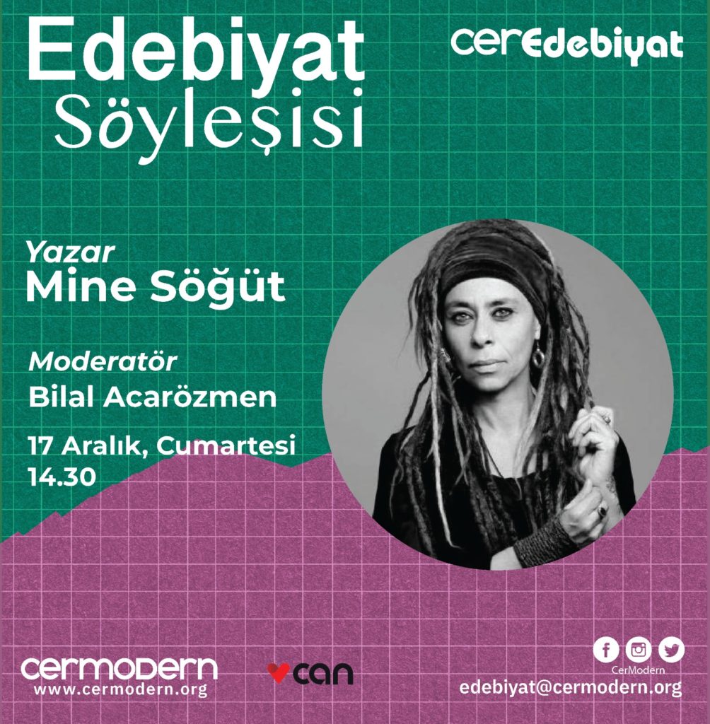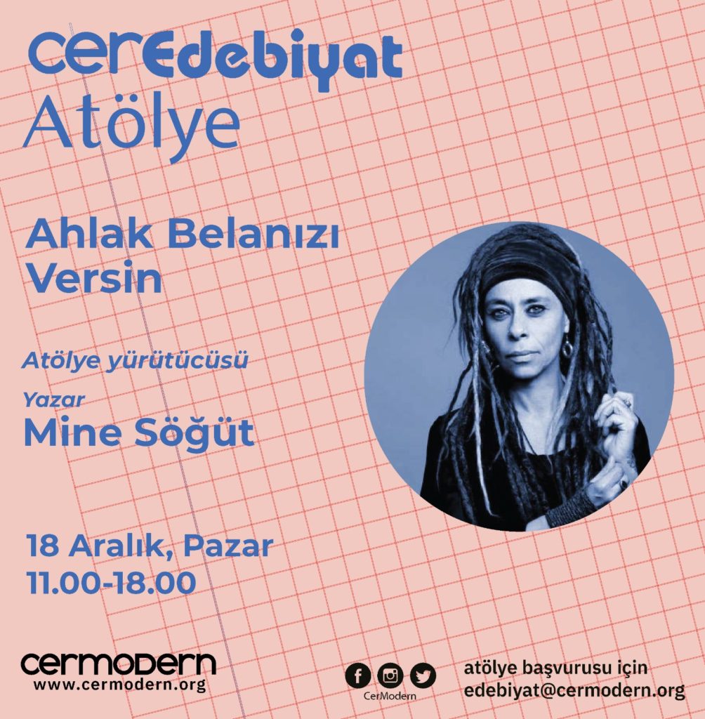 Mine Söğüt ile edebiyat söyleşisi 17 Aralık Cumartesi, “Ahlak Belanızı Versin” başlıklı atölye 18 Aralık Pazar günü CerModern’de düzenleniyor.