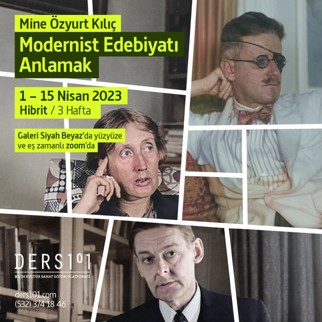 Prof. Dr. Mine Özyurt Kılıç ile “Modernist Edebiyatı Anlamak” eğitimi 1-15 Nisan tarihleri arasında Ders101 tarafından yüz yüze ve çevrimiçi olarak düzenleniyor.