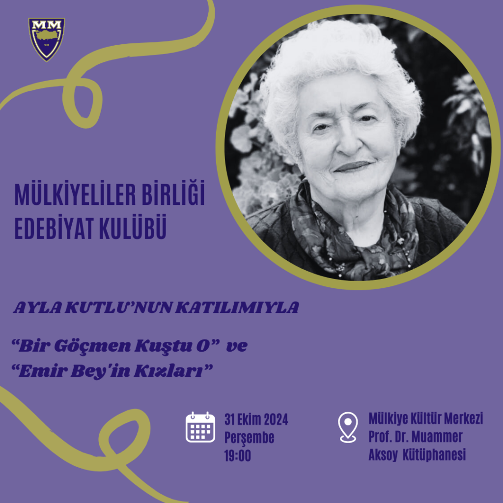 Mülkiyeliler Birliği Edebiyat Kulübü Ekim Ayı toplantısında, Ayla Kutlu’nun “Bir Göçmen Kuştu O” ve “Emir Bey’in Kızları” romanlarını tartışacak, yorumlayacak. Ayla Kutlu’nun da katılacağı etkinlik 31 Ekim Perşembe akşamı saat 19.00’da, Mülkiye Kültür Merkezi Prof. Dr. Muammer Aksoy Kütüphanesi’nde gerçekleşecek.
