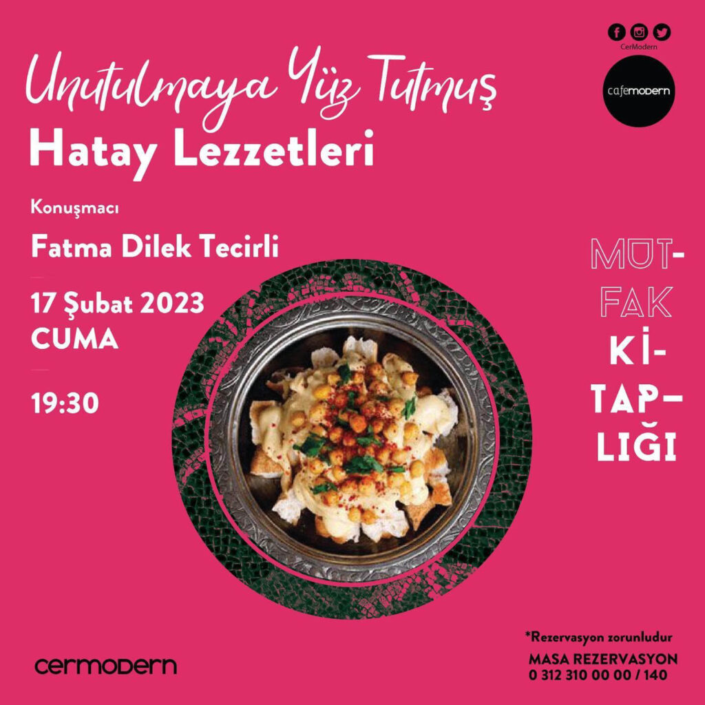 Hatay’ın geleneksel yemekleri, mutfak deneyim ve uygulamaları yazar/araştırmacı Fatma Dilek Tecirli’nin kitabı “Unutulmaya Yüz Tutmuş Hatay Lezzetleri” üzerinden yazarın anlatımı ve tiyatro sanatçısı-aktör Nejat Birecik’in anılarıyla zenginleştireceği sunum, Cermodern’in gastro-kültür etkinliği olan “Mutfak Kitaplığı” kapsamında lezzet tutkunlarıyla buluşuyor.