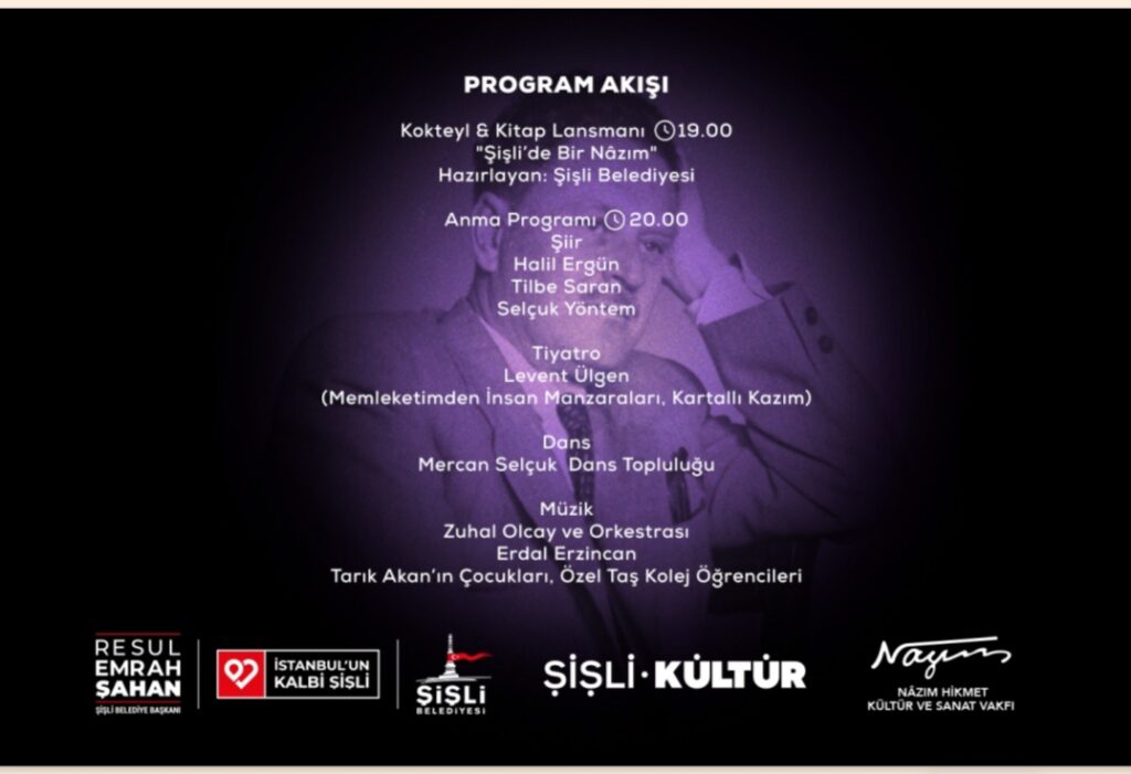 Etkinlik öncesi saat 19.00’da Şişli Belediyesi’nce hazırlanan “Şişli’de Bir Nâzım” kitabının lansmanı ve kokteyl yapılacak.