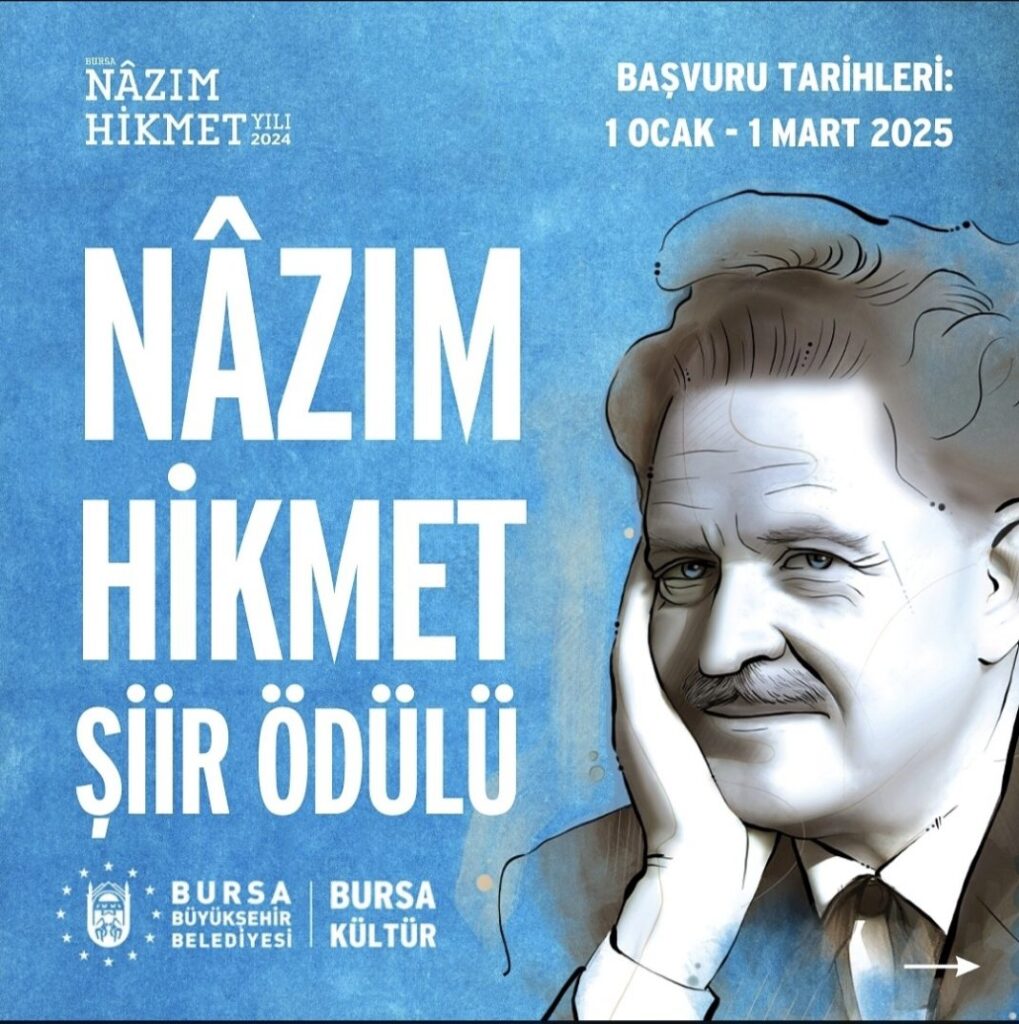 Bursa Büyükşehir Belediyesi’nin düzenlediği Nazım Hikmet Şiir Ödülü başvuruları devam ediyor. Yarışmaya 1 Mart 2025 tarihine kadar başvurmak mümkün.