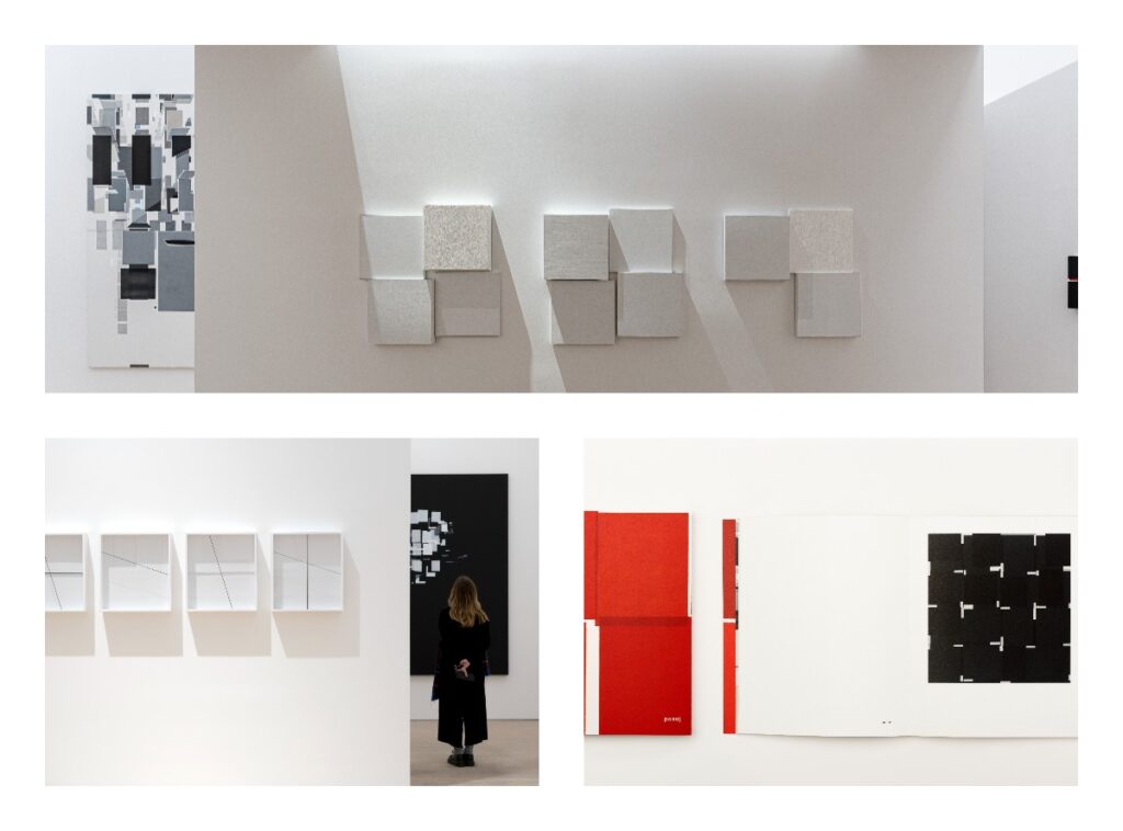 31 Aralık 2023 tarihine dek Arter’in 1. kat galerisinde ziyaret edilebilen Pasaj başlıklı sergi, Nuri Kuzucan’ın eski ve yeni üretimlerinden oluşturulan bir seçkiyi mekâna özgü bir mimari düzenlemeyle bir araya getiriyor. Kaos/düzen, ışık/gölge, boşluk/doluluk, yüzey/derinlik, iç/dış gibi ikilikler etrafında kurgulanan yapıtlardan oluşan sergi, hem zihinsel hem de algısal bir akışkanlığı ve geçişliliği merkezine alıyor. Pasaj, içine yerleştiği ve bir geçiş alanı olarak da yorumlanabilecek galeri mekânını ‘pasaj’ sözcüğünün mimari, yazınsal ve metaforik anlamları ekseninde resimsel uzamla ilişkilendiriyor.