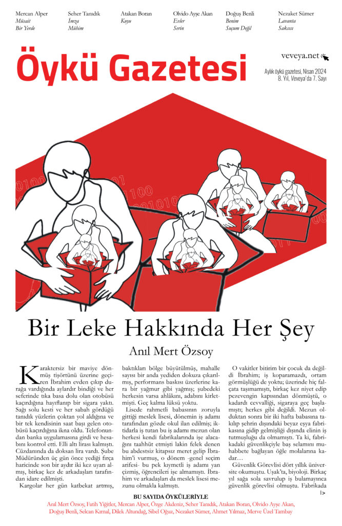 Öykü Gazetesi’nin yedinci sayısında; Anıl Mert Özsoy, Fatih Yiğitler, Mercan Alper, Özge Akdeniz, Seher Tanıdık, Atakan Boran, Olvido Ayşe Akan, Doğuş Benli, Selcan Kırnal, Dilek Altundağ, Sibel Oğuz, Nezaket Sümer, Ahmet Yılmaz ve Merve Üzel Tambay’ın öyküleri var.
