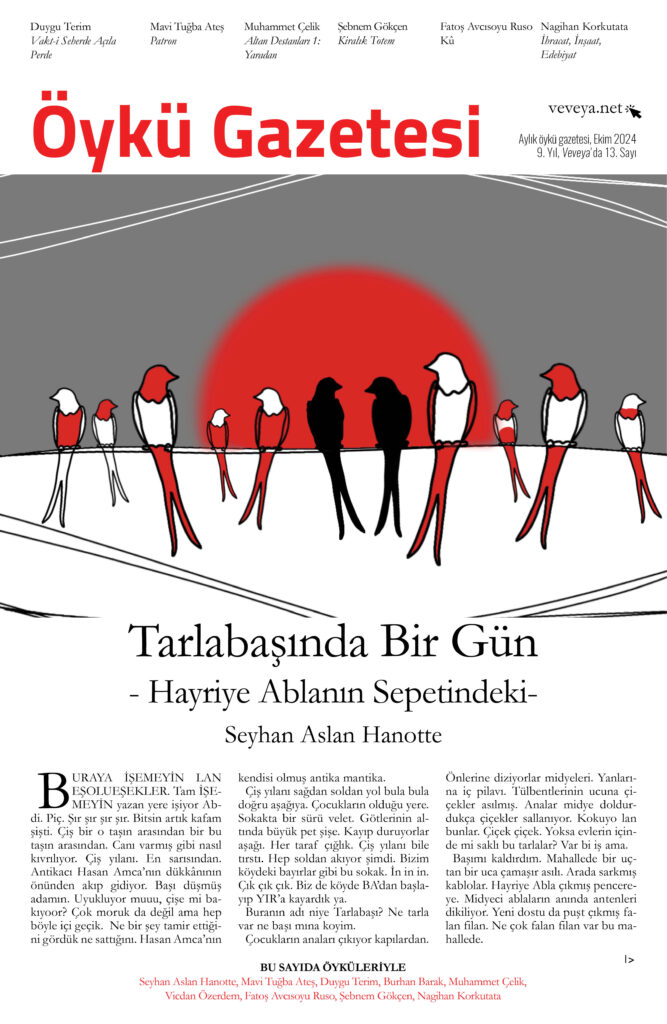 Öykü Gazetesi’nin Ekim sayısında; Seyhan Aslan Hanotte, Mavi Tuğba Ateş, Duygu Terim, Burhan Barak, Muhammet Çelik, Vicdan Özerdem, Fatoş Avcısoyu Ruso, Şebnem Gökçen, Nagihan Korkutata’nın öyküleri var.