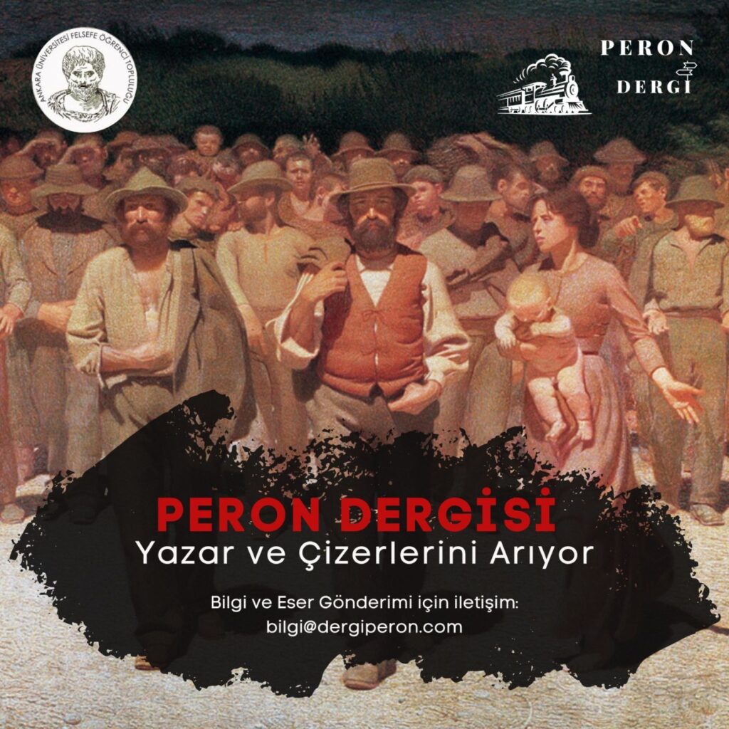 “Öncelikle Peron dergisi olarak her zaman böyle bir birleşmeyi bekliyorduk. Gözlerimiz her zaman açık, etrafı izliyorduk. Yolculukta yalnız gitmeyi istemediğimizi de başta açıkça belirtmiştik. Ankara Üniversitesi Felsefe Topluluğu’nun dergi girişimi için kolları sıvadığını öğrenince söz konusu birlikteliği ciddi bir şekilde düşünmeye başladık. Kadrosundaki nice heyecanlı ve bilgili insanların varlığı ise dergiyi çok katmanlı bir noktaya getirebilir, okurunu arttırabilir, daha çok tartışılmaya yol açabilir bir dergi tahayyülünü çok daha somut bir biçime sokabileceğinden bu birlikteliği bir zorunluluk olarak gördük. Hem böyle çok katmanlı bir derginin yazın içerisindeki yokluğu hem de yeni arkadaşlarla paylaşılabilecek heyecanla birlikte iş bölümü içerisinde çalışma olanağı Peron dergisini yazında çok daha dayanaklı bir zemine oturtacak, 8. sayı ile birlikte bağlılık ilk meyvesini vermiş olacaktır. Mevzubahis topluluk Peron dergisinin gayelerini paylaşmakta ve bunun ötesinde geleceği şimdiden paylaşarak, kolektif bir emekle çalışarak çizme yolunda kararlı, azimli ve cesur bir tavır ortaya koymaktadır. Bizler beklediğimiz tepkiyi alana kadar dergimizi herkese erişilebilir kılacak, her ile temas edene kadar, her ilde bahsedilene kadar çok sıkı ve dikkatli bir şekilde çalışacağız. Tüketim çağının Gargantua’sına karşı güçsüz bir savaşım içerisinde olan dergilerin varlığının farkında olarak, buna karşı gerekli yanıtları verebileceğimizi düşünüyor; dergimize her sayımız ve dosya konumuzda yeni yazarların ve okurların katılması beklentisi ile birlikte Anka kuşunun tekrardan göklerde süzüleceği düşüyle kolektif çalışmamıza başlıyoruz. Toplumsal Cinsiyet konulu 8. sayımızda görüşmek üzere… Hoşçakalın!”