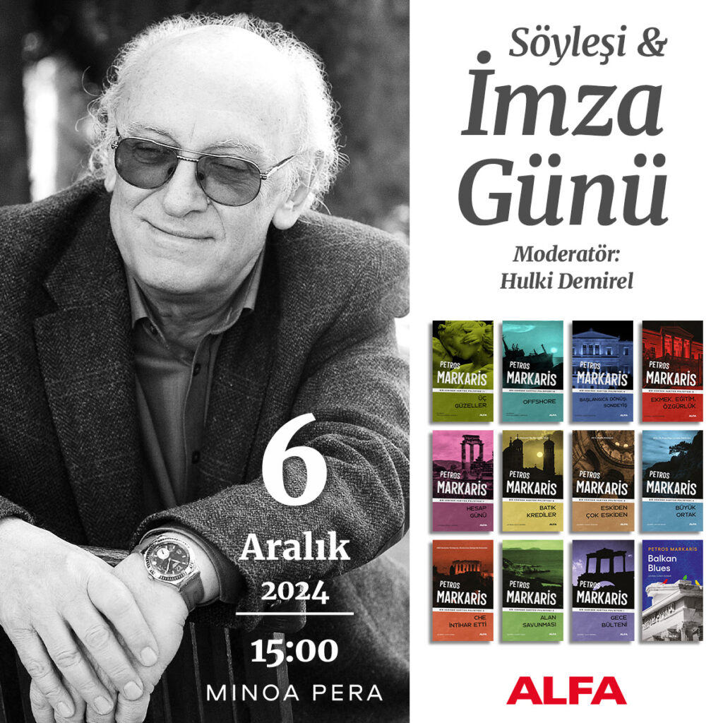 Edebiyatseverleri kendine hayran bırakan Komiser Haritos serisiyle Atina’nın toplumsal ve siyasi derinliklerini güçlü kalemiyle anlatan Markaris, Hulki Demirel moderatörlüğünde gerçekleştirilecek söyleşinin ardından sevilen kitaplarını imzalayacak.
