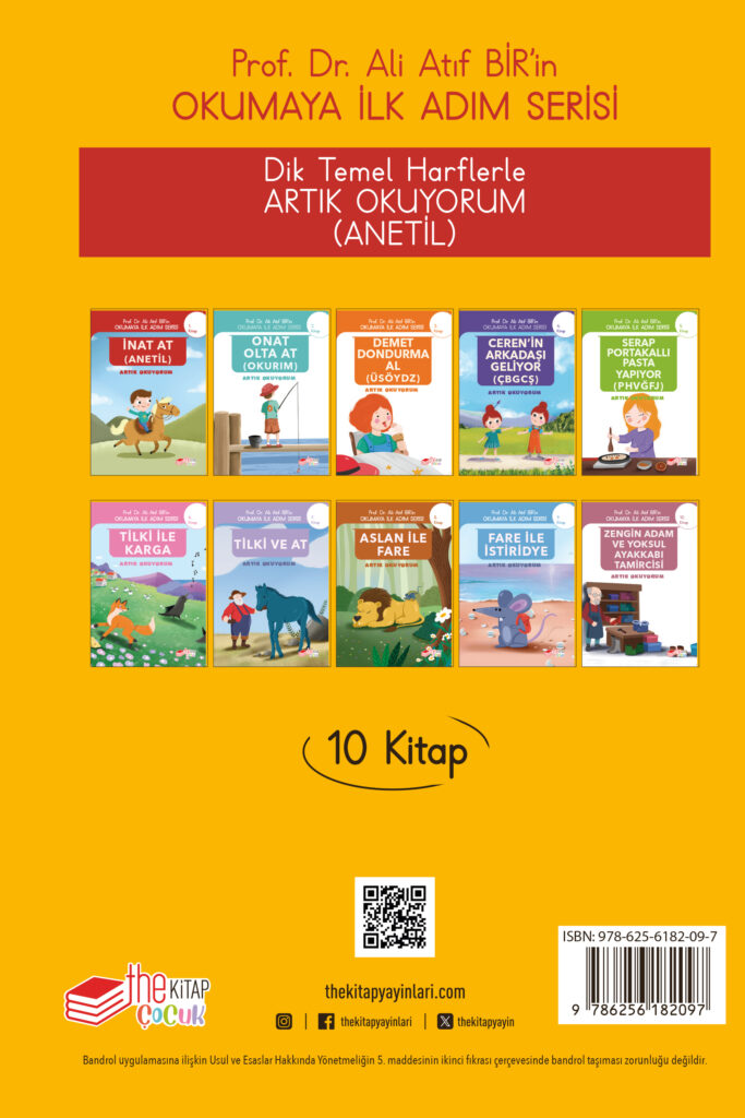 Prof. Dr. Ali Atıf Bir’in Okumaya İlk Adım Serisi, okumayı yeni öğrenen 1.Sınıf öğrencileri için hazırlandı. 10 kitaptan oluşan bu serinin ilk 5 kitabı çocuklara ses gruplarını öğretmeyi hedeflerken son 5 kitap, eğitici masallar içermektedir.
