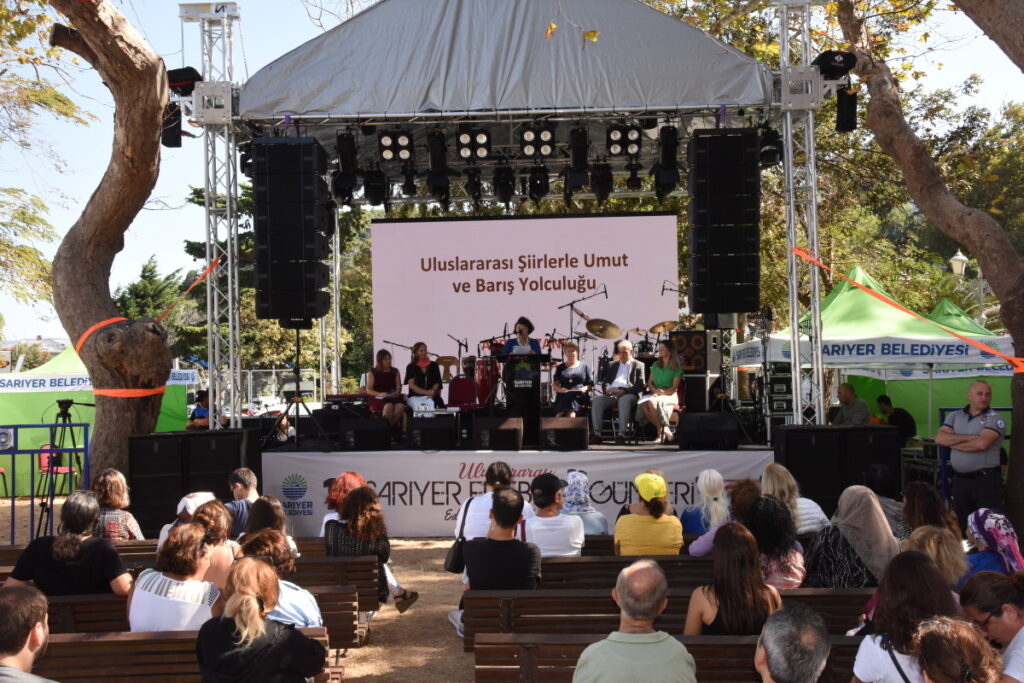 Program, “Uluslararası Şiirlerle Umut ve Barış Yolculuğu” şiir dinletisiyle başladı. İlk olarak sahneye çıkan etkinliğin moderatörü Bilgi Çengelli, “ Sarıyer Belediyesi’nin düzenlemiş olduğu 10. Uluslararası Sarıyer Edebiyat Günleri’nde hep beraber olmanın mutluluğunu ve onurunu yaşıyoruz. Başta Sarıyer Belediye Başkanı Şükrü Genç ve ekibine çok teşekkür ediyoruz. Sarıyer, adeta bilimin, sanatın, kültürün ve edebiyatın merkezi konumundadır. Dil, din, ırk, renk ve kültür olarak birbirimizden farklıyız. Ancak hepimizin hissettiği ortak duygular aşk, dostluk, barış, umut bizleri birbirimize bağlar, kültürler arasında köprüler kurar, dünyayı güzelleştirir” dedi. Konuşmanın ardından Belçikalı şair Kathleen Tillie, Alman şair Acrilla Zhang, Iraklı şair Kemal Beyatlı, Arnavut şair Roksana Xheka ve Türk şair Leyla Işık barış şiirlerini edebiyatseverler için seslendirdi.