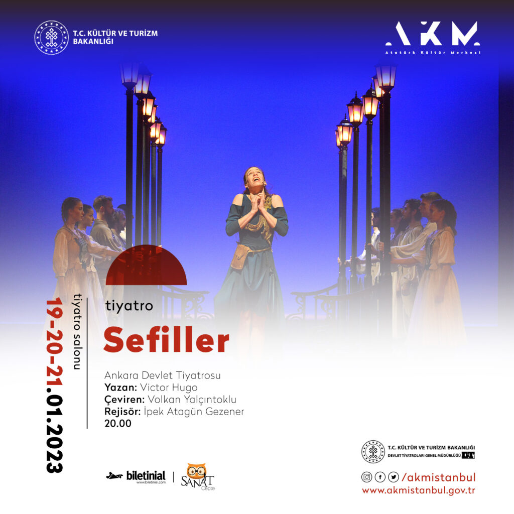 Victor Hugo’nun üzerinde 14 yıl çalıştığı, 18. yüzyıl Fransa’sında halkın hayata tutunuşunu aktaran “Sefiller”, çağları, coğrafyaları aşarak dünyanın en önemli edebi eserlerinden birisi ve Fransa’nın başyapıtı olarak nitelendiriliyor. Bugüne kadar filmlere, müzikallere ve tiyatro oyunlarına konu olan “Sefiller”, Ankara Devlet Tiyatrosu oyuncuları tarafından Atatürk Kültür Merkezi sahnelerine taşınıyor. 19, 20, 21 Ocak tarihlerinde AKM Tiyatro Salonunda 2 perde olarak sahnelenecek oyunda, insanın evrensel hikayesinde adaletin ve sevginin, acının ve umudun, dünün ve bugünün hikayesi izleyiciye sunuluyor.
