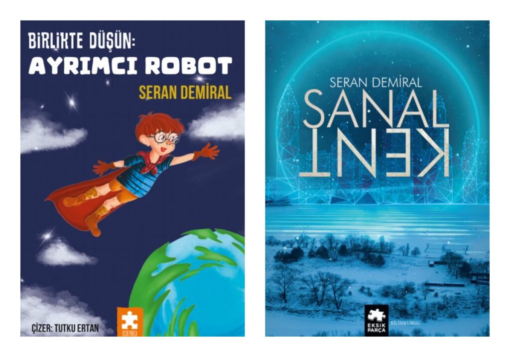 Seran Demiral’ın Eksik Parça Yayınlarından bu yılın ocak ayında çıkan çocuklar için yazdığı Ayrımcı Robot ve yetişkinlere hitap eden 2022 yılında çıkan Sanal Kent üzerine konuştuk.