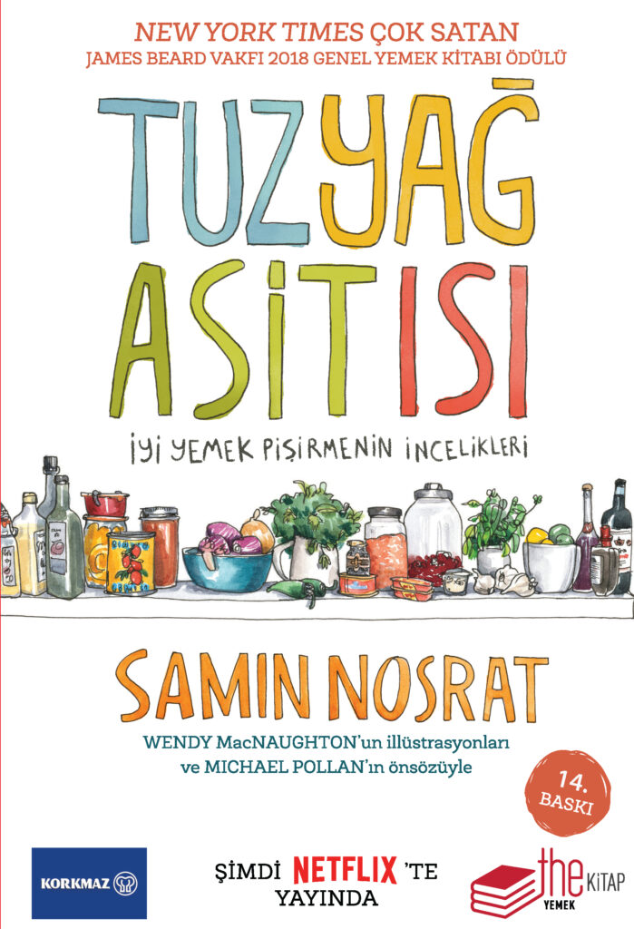 Samin Nosrat’ın 2020 yılında yayımlanan Tuz, Yağ, Asit, Isı adlı kitabı 14. baskısıyla Özgü Çelik çevirisiyle The Kitap Yayınları’da.