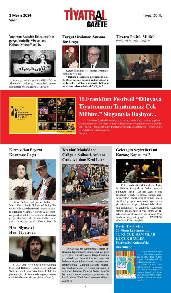 Tiyatro İçerikli Tiyatral Gazete 1 Mayıs 2024 İşçi Bayramında yayım hayatına başladı.