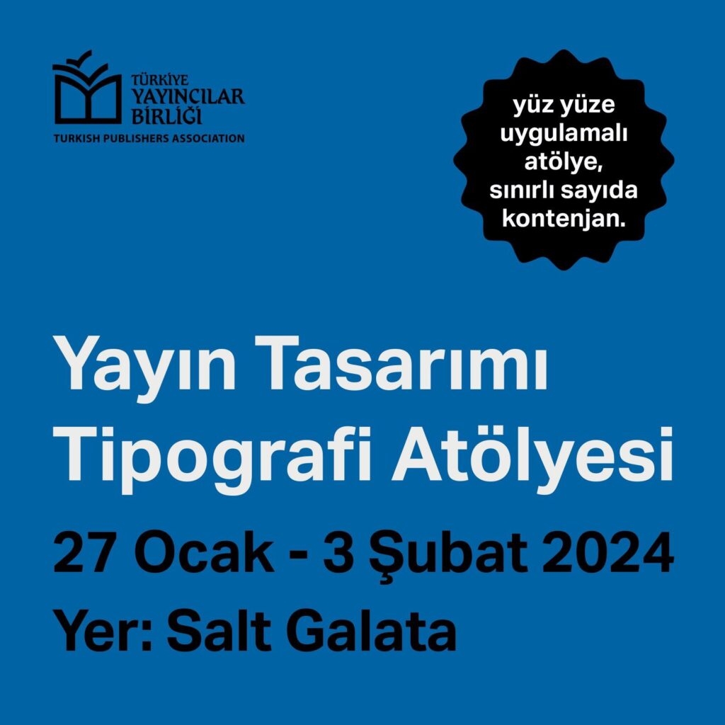 Tasarımcı Geray Gençer tarafından yüz yüze ve uygulamalı olarak yürütülecek olan bu atölye temel tasarım eğitimine sahip, yayıncılık alanında tipografi becerilerini geliştirmek isteyen katılımcılar için uygun. Atölye projesi katılımcıların kavramsal düşünme yeteneklerini tipografiyle ifade etmelerini amaçlamakta.