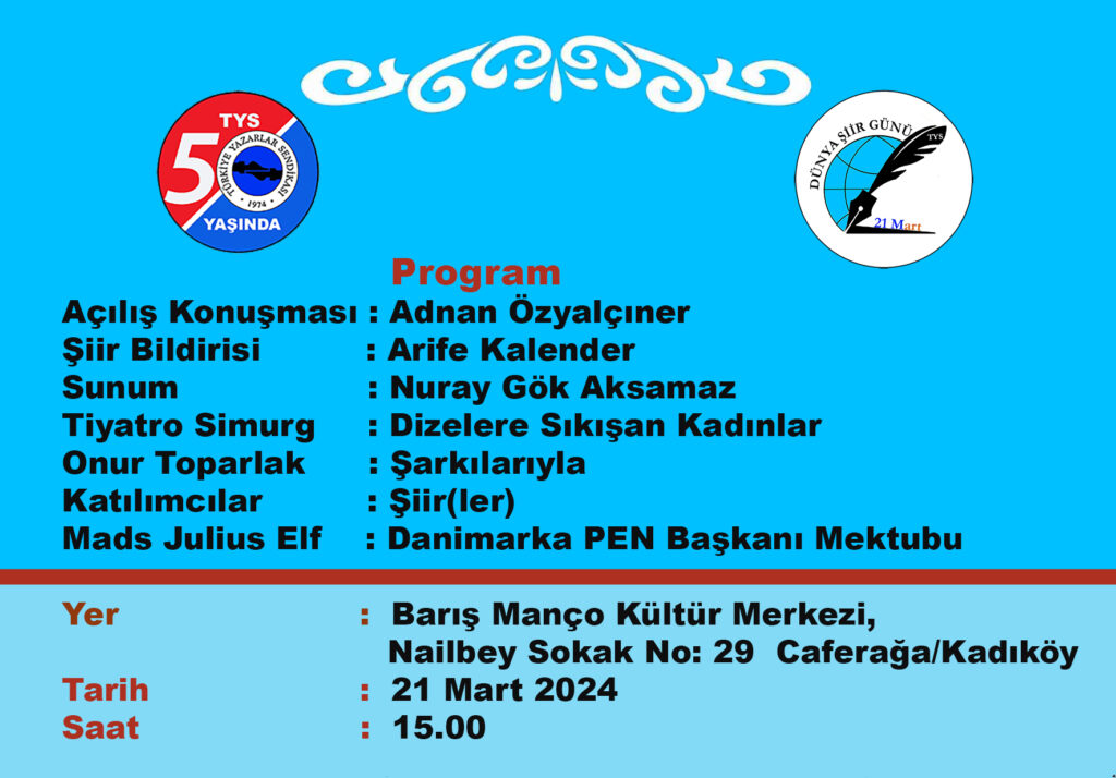 Arife Kalender’in TYS Dünya Şiir Günü Bildirisi’ni okumak için >>>