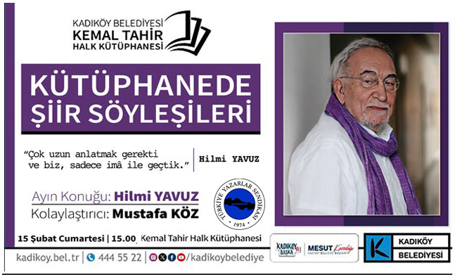 Türkiye Yazarlar Sendikası (TYS) ve Kadıköy Belediyesi iş birliğiyle düzenlenen “Şiir Söyleşileri” şubat ayı konuğu Hilmi Yavuz olacak. Mustafa Köz’ün kolaylaştıracağı etkinlik 15 Şubat’ta İstanbul, Kemal Tahir Halk Kütüphanesi’nde 15.00’da düzenlenecek.