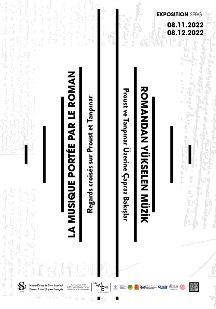 “Romandan Yükselen Müzik, Proust ve Tanpınar Üzerine Çapraz Bakışlar”, Marcel Proust’un 1913-1927 yılları arasında yedi cilt hâlinde yayımlanan “Kayıp Zamanın İzinde” ile Ahmet Hamdi Tanpınar’ın “Huzur”, “Sahnenin Dışındakiler” ve “Mahur Beste” romanlarının müzikle ilişkisini irdeliyor. Aylin Koçunyan küratörlüğünde Notre Dame de Sion Fransız Lisesi’nde gerçekleşen sergi, aslında kapsamlı bir araştırmanın dökümü. “Romandan Yükselen Müzik” yazının girişinde de belirttiğim gibi bir enformasyon sergisi. Fakat bu bilgi ve belge akışını destekleyen dolgu görselleri var. Proust’un “Swann’ların Tarafı”ndaki Fatih Sultan Mehmet atfına ithafen Bellini’nin meşhur Fatih portresi gibi… Aynı zamanda okul müdürü Alexandre Abellan’ın koleksiyonunda yer alan tablolardan Proust romanlarındaki karakterleri tanımlayacak şekilde tatlı bir seçki yapılmış,” diye haberinde anlatıyor Şahinler.
