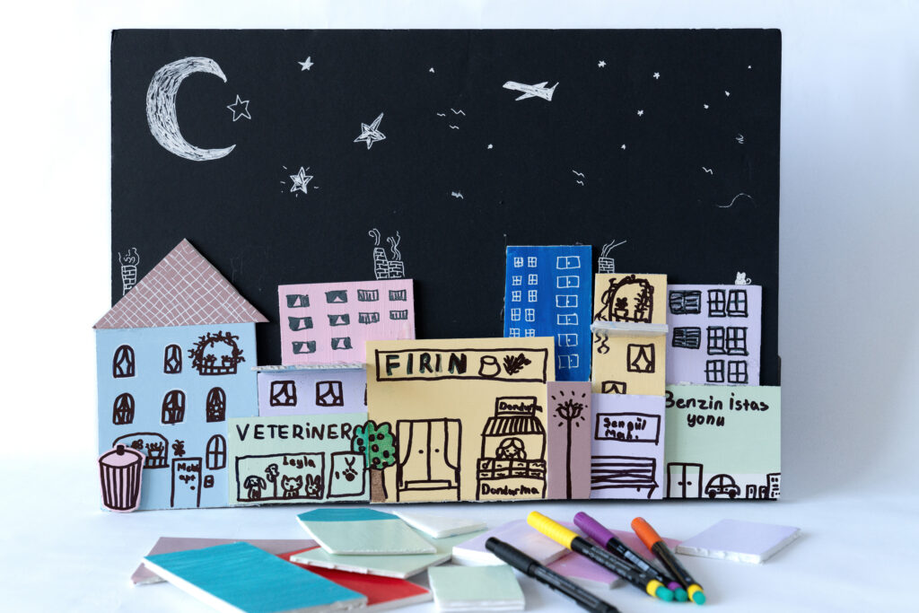 Program, üç boyutlu kent manzaralarının oluşturulmasına odaklanıyor. Müzede kent manzarasından ilham alan sanat çalışmalarını inceleyen çocuklar, atölyede, karton ve fotoblok malzeme ile katmanlar oluşturarak kent resimleri hazırlıyor. Program, resimlerin üzerine stilize çizimlerin eklenmesiyle tamamlanıyor.