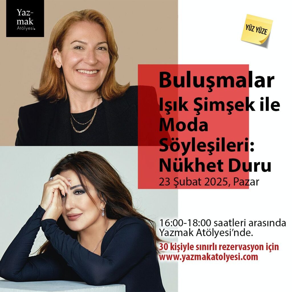 Türk Pop Müziği’nin en özel seslerinden, 70’li ve 80’li yıllarda Türkiye’de popüler müziğin öncülerinde biri olan ve usta yorumculuğuyla birçok albüm çıkarmış; Beni Benimle Bırak, Ben Gene Sana Vurgunum, Melankoli, Cambaz, Mahmure ve Yasaksa Yasak gibi şarkılarıyla unutulmazlar arasına giren Nükhet Duru, Işık Şimşek ile Moda Söyleşileri’nin Şubat ayı konuğu olacak. Başta Altın Plak olmak üzere çok sayıda ödül sahibi Nükhet Duru, Yazmak Atölyesi’nde sevenleriyle buluşacak.