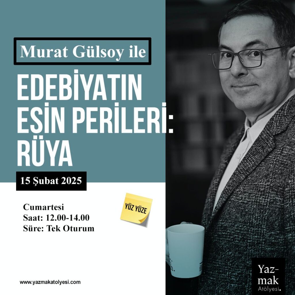 Yazmak Atölyesi’nin yeni sezonunda yazarlara ilham veren sanat dalları ve disiplinler üzerine “Mimarî”, “Resim” ve “Tıp”ı katılımcılarla buluşturan Murat Gülsoy, Şubat ayında Edebiyatın Esin Perileri: Rüya semineri ve Aynur Kulak moderatörlüğünde gerçekleşecek Edebiyatta Yaratıcı Süreçler söyleşisiyle bizlerle olacak.