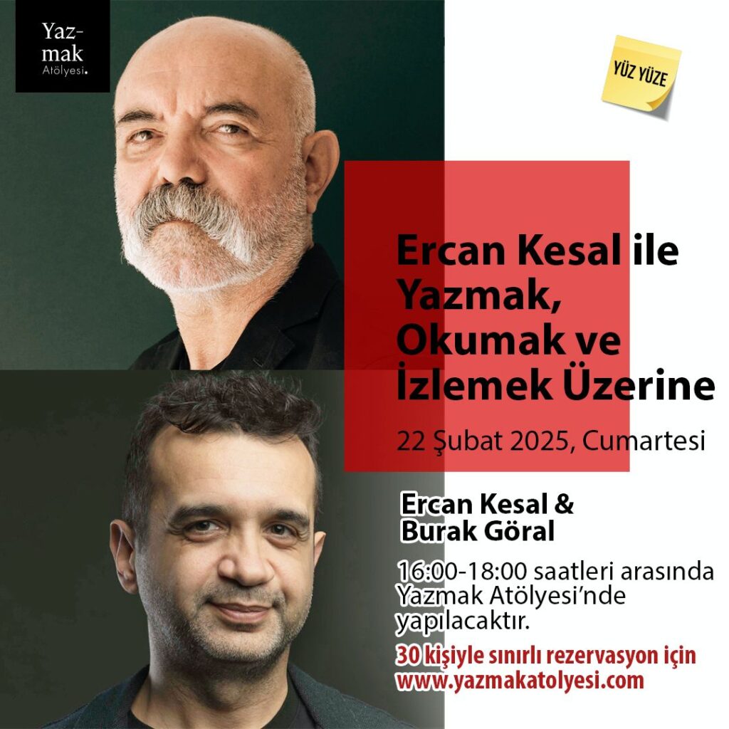Yazmak Atölyesi söyleşi programında bu ay doktor, senarist, oyuncu ve yazar Ercan Kesal’ı ağırlıyor! Ulusal ve Uluslararası bir çok film festivalinde En İyi Erkek Oyuncu ve En İyi Senaryo ödülleri alan; Peri Gazozu, Cin Aynası, Nasipse Adayız, Bozkırda Bir Geceyarısı, Aslında, Evvel Zaman, Zamanın İzinde, Kendi Işığında Yanan Adam, Velhasıl, Hekimlik Sanatları, Cebimdeki Ekmek Kırıntıları, İsim Şehir Film Roman kitaplarının sahibi Kesal, Ercan Kesal ile Yazmak, Okumak ve İzlemek Üzerine söyleşisiylebizlerle olacak. 3 Maymun ve Bir Zamanlar Anadolu’da filmlerinde senarist ve oyuncu olan, Çukur dizisindeki İdris Koçovalı karakteriyle geniş kitlelerde büyük ilgi gören Kesal ile gerçekleşecek söyleşinin moderatörlüğünü usta film eleştirmeni ve senarist Burak Göral üstleniyor.