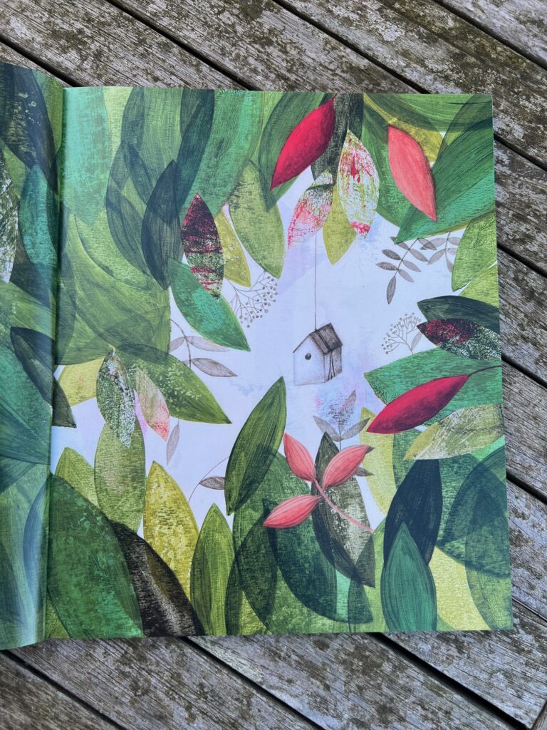 Bir sessiz kitap sever olarak fiziksel özelliklerini de incelediğimiz söylemeden geçemeyeceğim. Kapak tasarımı dikkat çekici. Bir vesikalık fotoğraf olarak gördüğümüz çocuğu kapağı açınca tam boy algılıyoruz. Kitap kare değil, dikdörtgende değil. Kareye daha yakın bir yapıda. Renk paleti yeşil, beyaz, siyah ve kırmızdan oluşuyor ama his paleti çok daha geniş. Sayfalardaki leke gibi nokta nokta yapılar benim sayfaya daha dikkatli bakmama sebep oldu. Her sessiz kitapta olduğu gibi bu kitapta da birkaç favori sayfam var. Tabi 535 defa okuduğum halde hâlâ değişmediler. Ben okumaya daha çokça devam ederim.