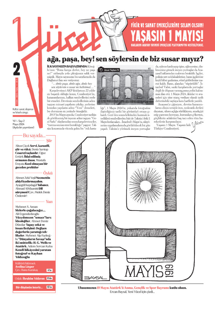 2024’ün Nisan ayında yayın yaşamına başlayan Yeni Yücel, Mayıs sayısıyla okurlarıyla buluşuyor. Başyazıdan emekçilerle dayanışmanın mesajını veren Yeni Yücel, muktedirlere sesleniyor: “Ağa, paşa, bey! Sen söylersin de biz susar mıyız?”