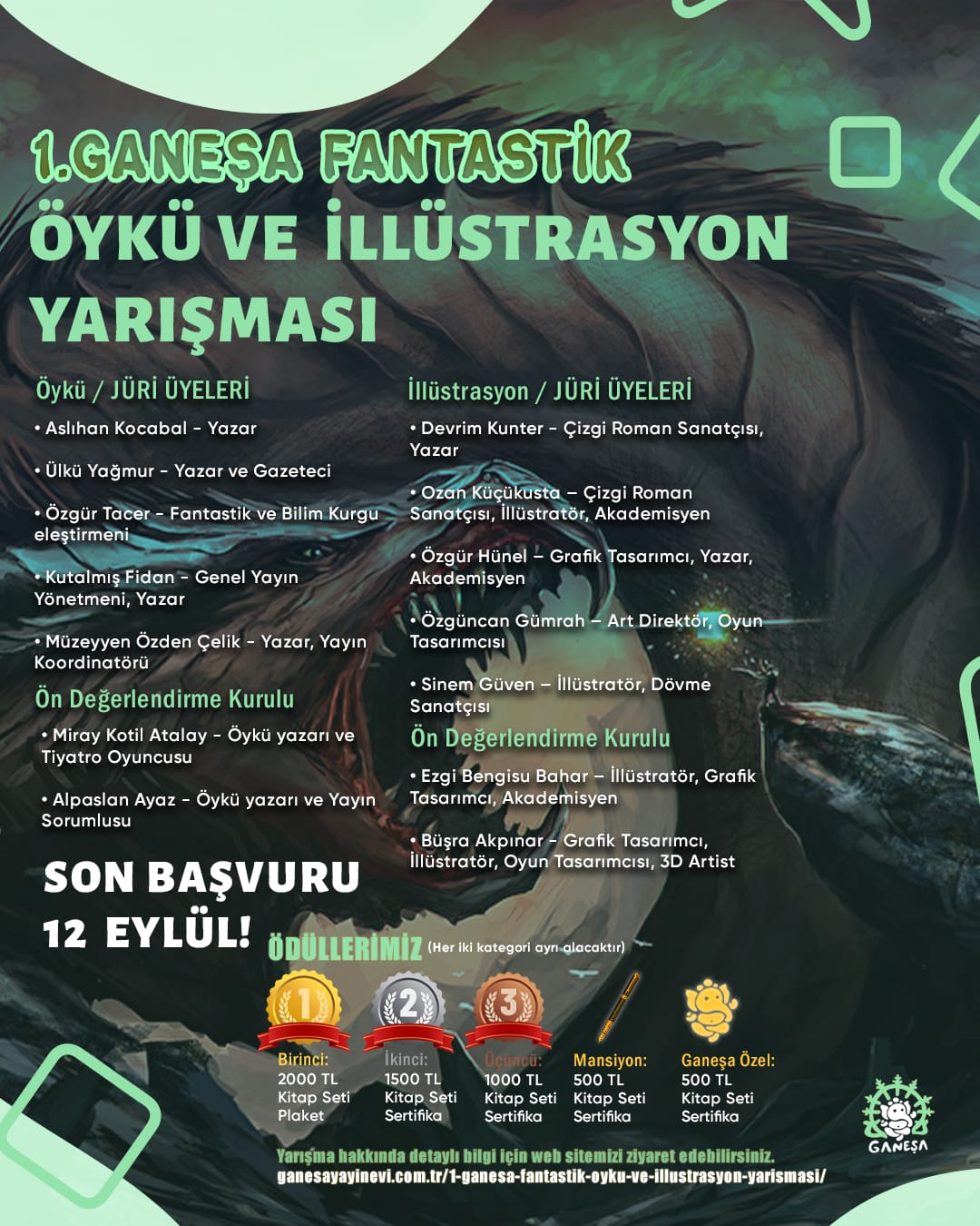 Bu yıl birincisi düzenlenecek Ganeşa Fantastik Öykü Yarışması başvuruları açıldı.